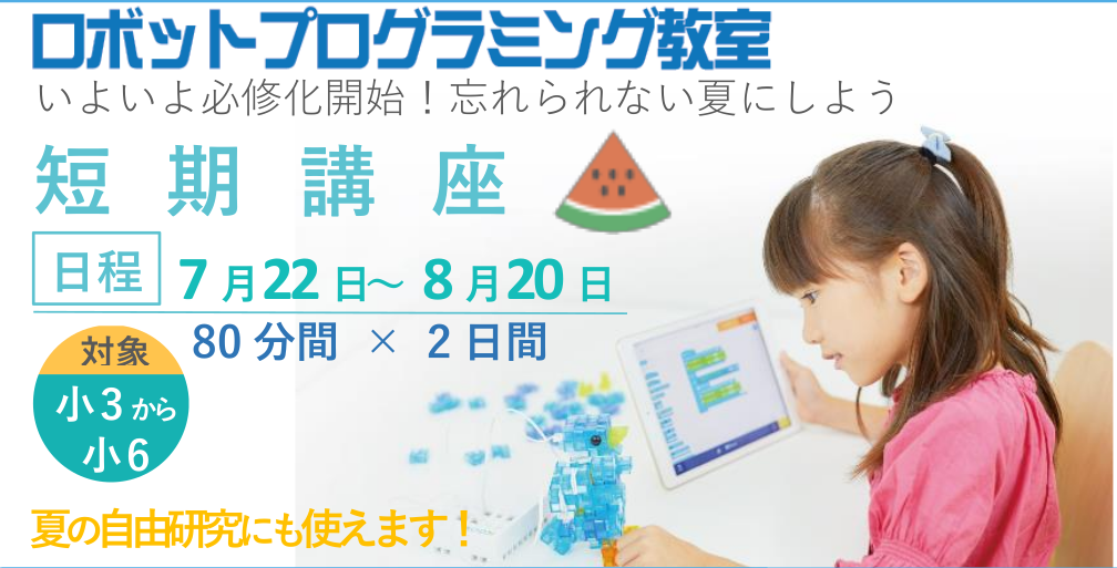 7月22日~8月20日の期間にプログラミング教室の短期講座を実施します。